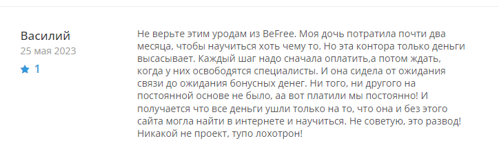 BeFree – проблемы с обучением и требования денежных взносов