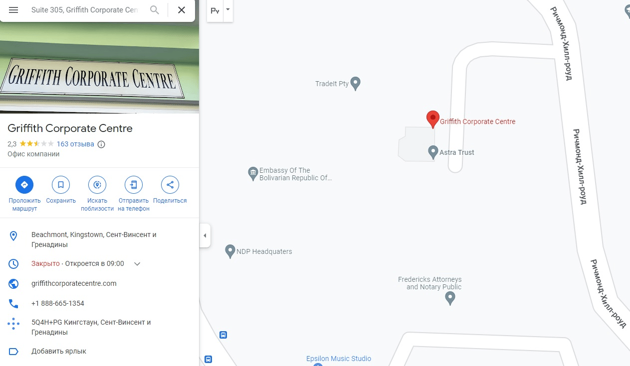 Опубликованные юридические данные используются многими форекс-кухнями. Аферисты просто скопировали сведения у другого СКАМ-проекта. Рассматриваемая компания не фигурирует в реестре юридических лиц оффшорного государства. Мошенники опять соврали своим клиентам.