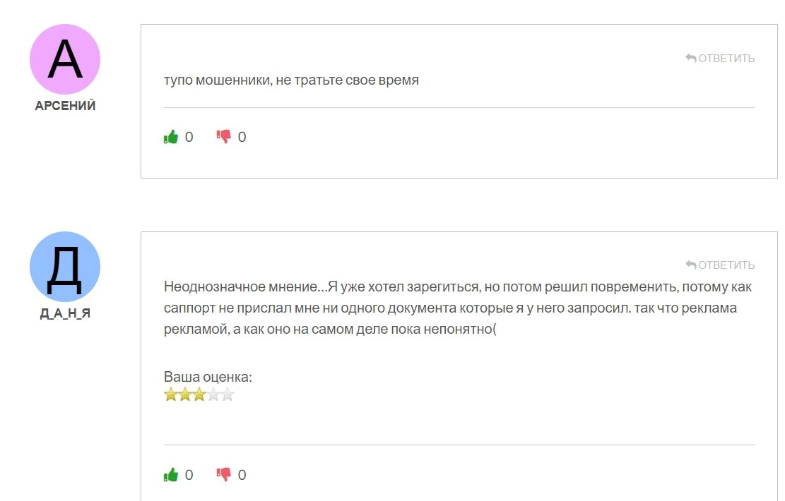 Клиенты обращают внимание на очень поверхностное описание условий трейдинга, например, отсутствует информация о торговых счетах. Что касается размера финансовых убытков, то они варьируются в диапазоне от 10 000 рублей и до $1000. Мошенники тщательно изучают свою жертву, оценивают уровень ее платежеспособности.
