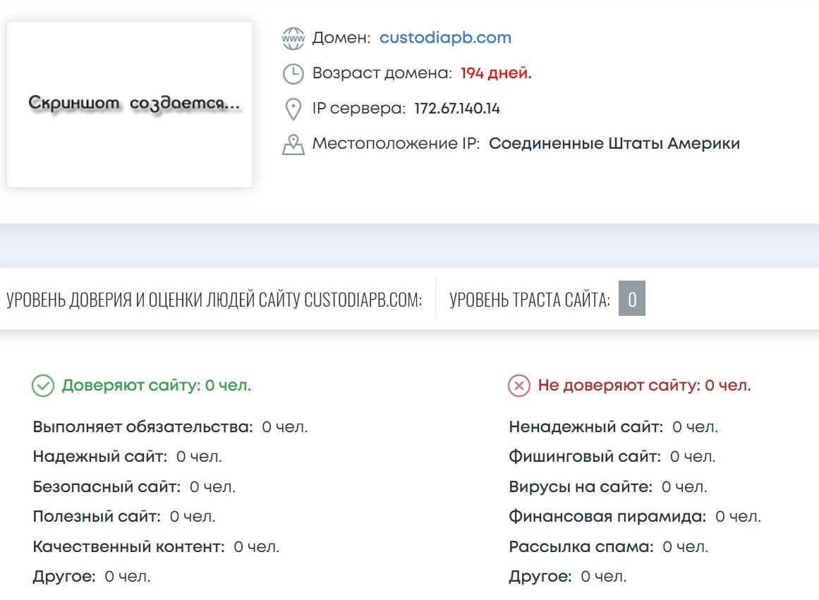 - интерфейс официального сайта полностью скопирован у custodiabank.com;