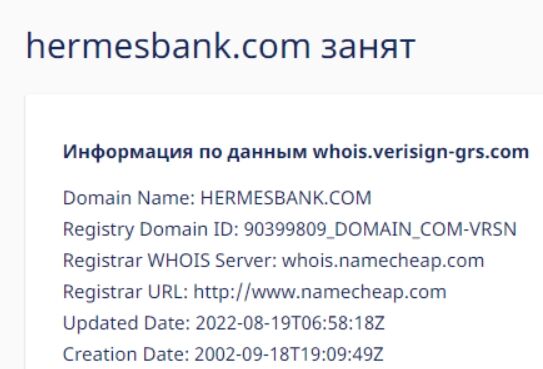| Домен официального сайта | https://www.hermesbank.com/ |