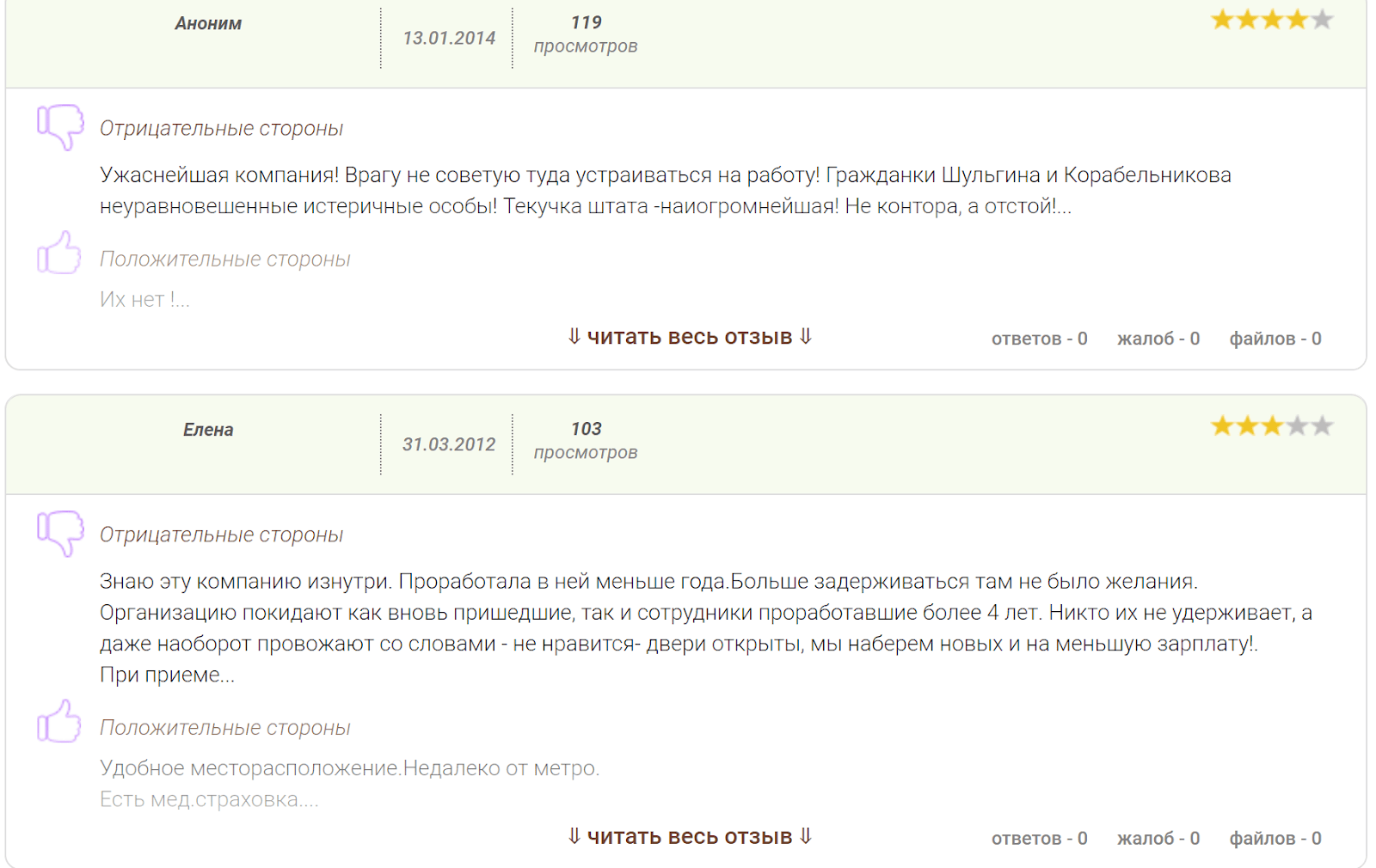 Комментариев в сети предостаточно. Мы отыскали отклики не только от клиентов, но и от сотрудников. Внизу представлено несколько историй от бывших менеджеров. Если вы посмотрите, то в основном бывшие сотрудники столкнулись с неуравновешенным начальством и нездоровой ситуацией внутри коллектива. В большинстве случае квалифицированных сотрудников не ценят, поэтому очень высокий показатель текучки кадров.