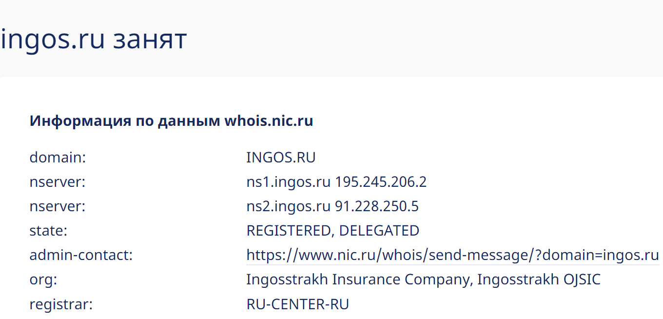 Ингосстрах – потенциальный развод, из-за того, что нереально проверить историю домена. Не совсем понятно, зачем так делать, если вам нечего скрывать.
