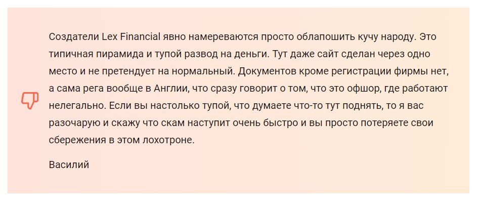 Обзор финансовой пирамиды Lex Financial – почему не платит, отзывы о сливе инвестиций