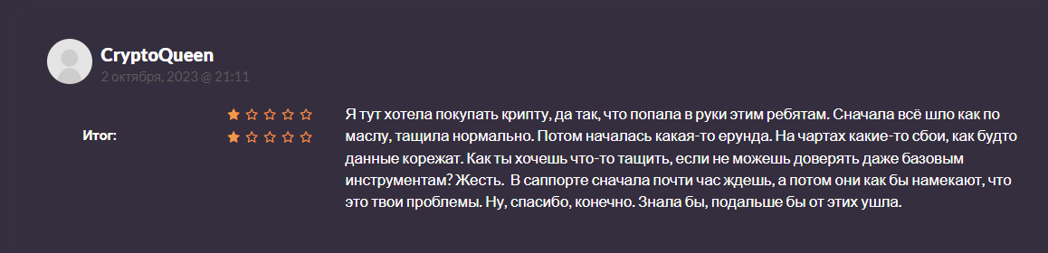 Пользователь высказывает недовольство из-за сбоев на графиках. Отмечает долгое ожидание в поддержке и игнорирование проблем, которые возникли при торговле.